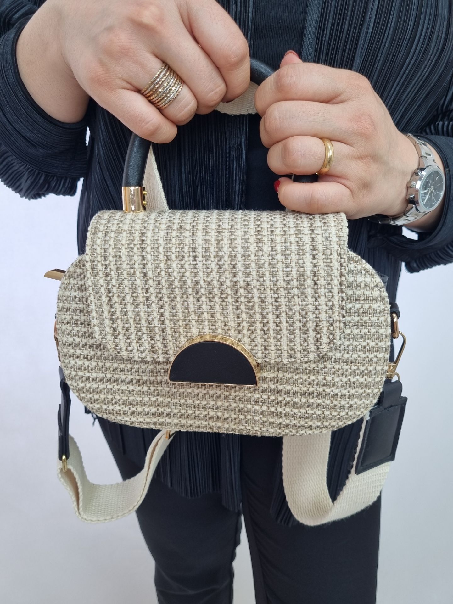 کیف زنانه دستی کنفی قفل دار