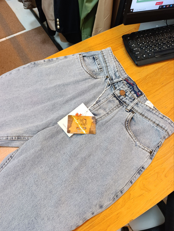 شلوار آبی مام فیت مردانه و زنانه گرم بالا کد 165